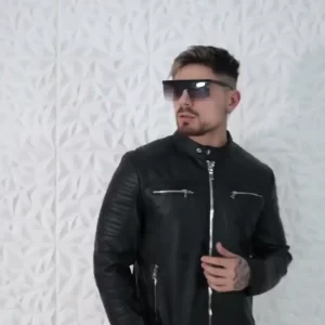 Campera de Hombre modelo Cuero cierre cromado en estilo Liso.
