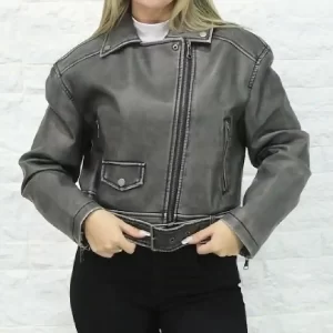 Campera de Mujer modelo Cierre cruzado B/N en estilo Liso.