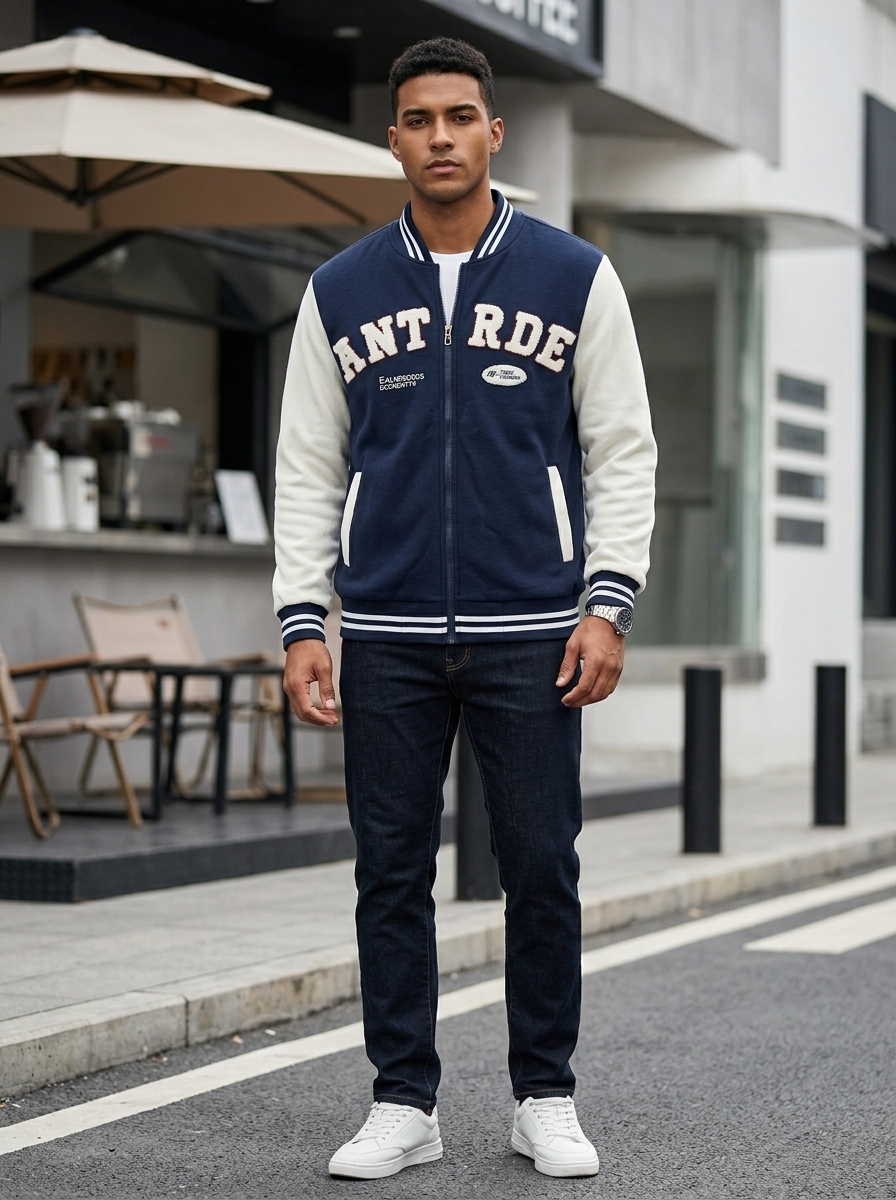 Campera de Hombre modelo Bomber Universitario en estilo Liso.