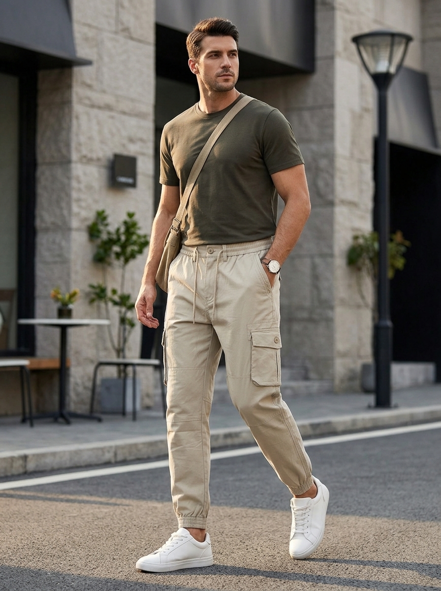 Joggers de Hombre modelo Cargo Secado rapido vista boton en estilo Liso.